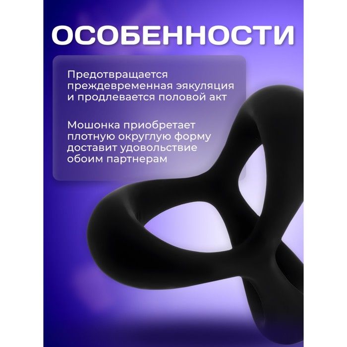 Эрекционное кольцо выполнено из медицинского силикона. Кольцо с фиксацией мошонки для дополнительной стимуляции. Обтекаемая форма обеспечит хорошее прилегание к телу.