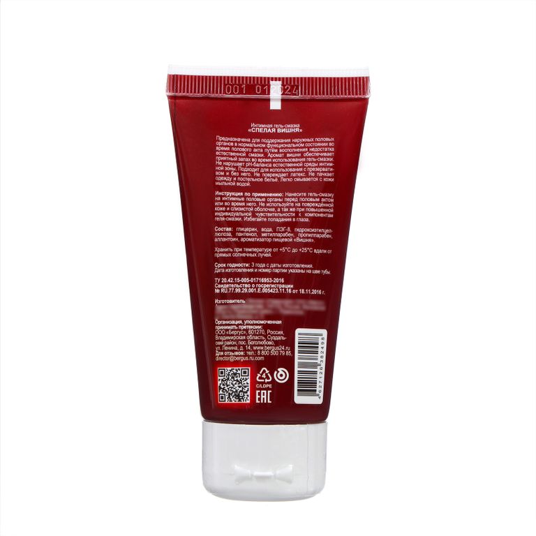 Гель-смазка интимная TOREX "Спелая вишня", 50 мл - густой гель с приятным ароматом вишни. Содержит пантенол, который способствует регенерации микроповреждений на коже и слизистой. Не пачкает бельё. Упаковка имеет контроль первого вскрытия. Интимный лубрикант на водной основе для вагинального и анального секса TOREX обеспечивает нежное проникновение и быстрое начало полового акта. Формула с пантенолом ухаживает за кожей и слизистой. Не содержит красителей и ароматизаторов. Имеет нейтральный pH. Интимная смазка сочетается с презервативами и интимными игрушками.